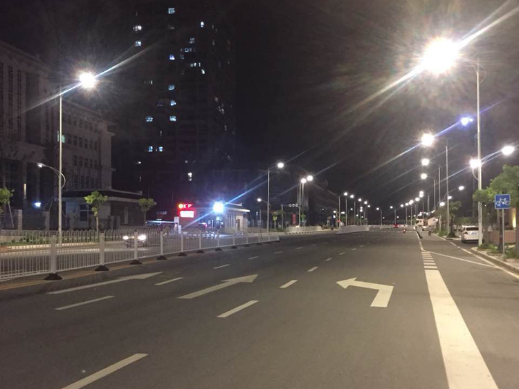 光澤縣光明大道安裝效果(12米高低桿)高250W,低70W,其中路口15米三火和四火中桿燈安裝250W。